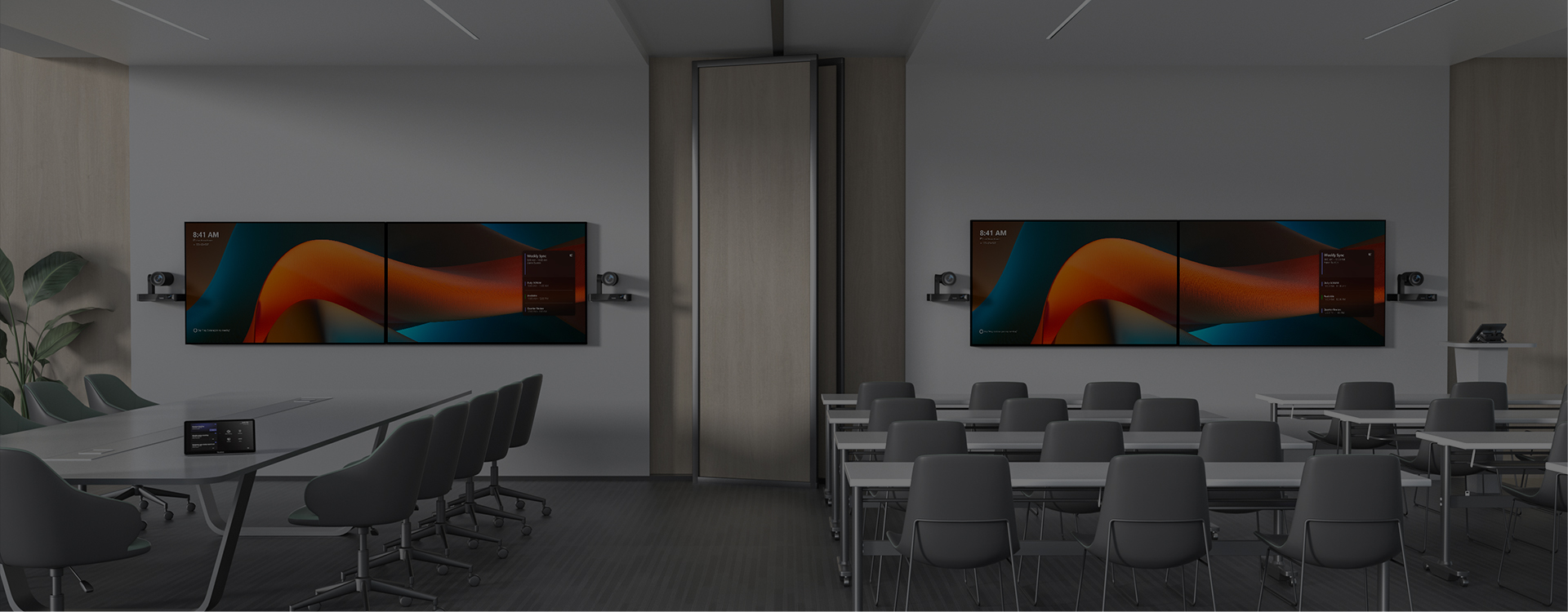- KI-Tracking & intelligente Kamerasteuerung: die Kamera erkennt automatisch Anwesende und folgt Sprecher:innen und Präsentierenden durch den Raum.
